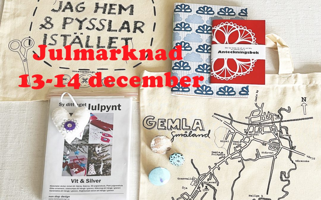 Jag kommer att sälja Gemlakassar, Sy ditt eget-julpynt kit, anteckningsböcker, tygringar och annat fint.